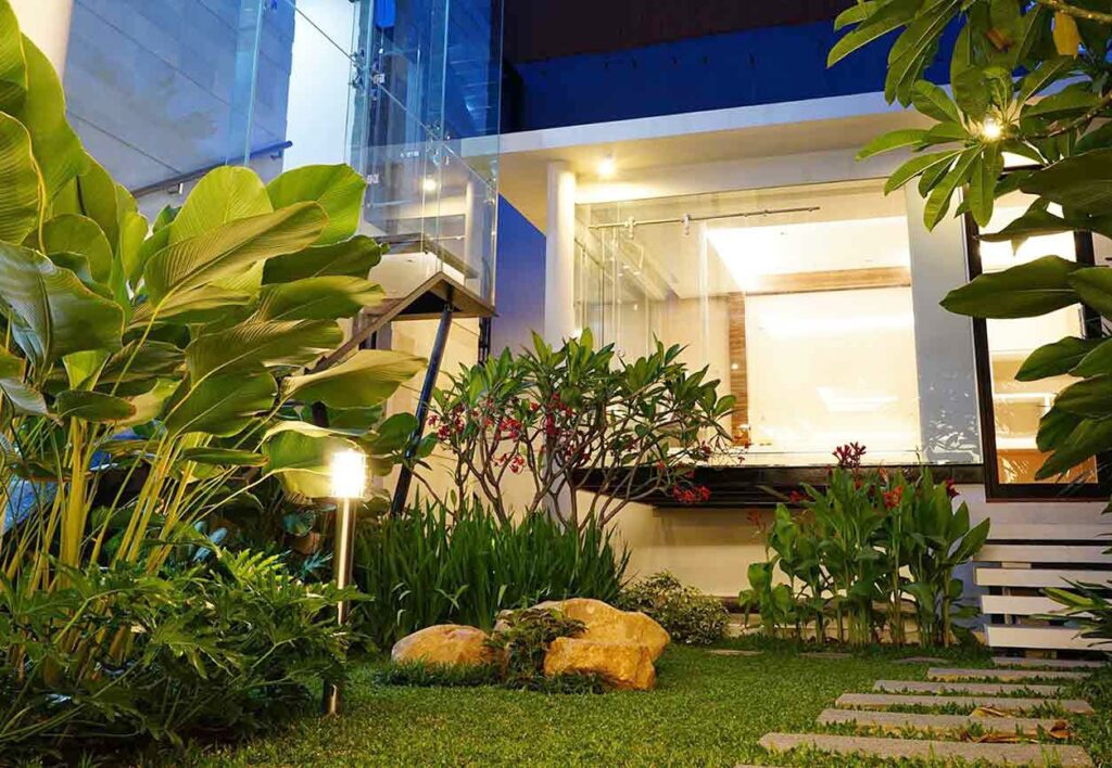 Selain meningkatkan estetika, pencahayaan juga memiliki fungsi keamanan. Area taman yang terang akan memudahkan penghuni rumah untuk berjalan di malam hari tanpa risiko tersandung. Dengan sistem pencahayaan yang baik, taman dapat dinikmati kapan saja tanpa mengurangi kenyamanan.